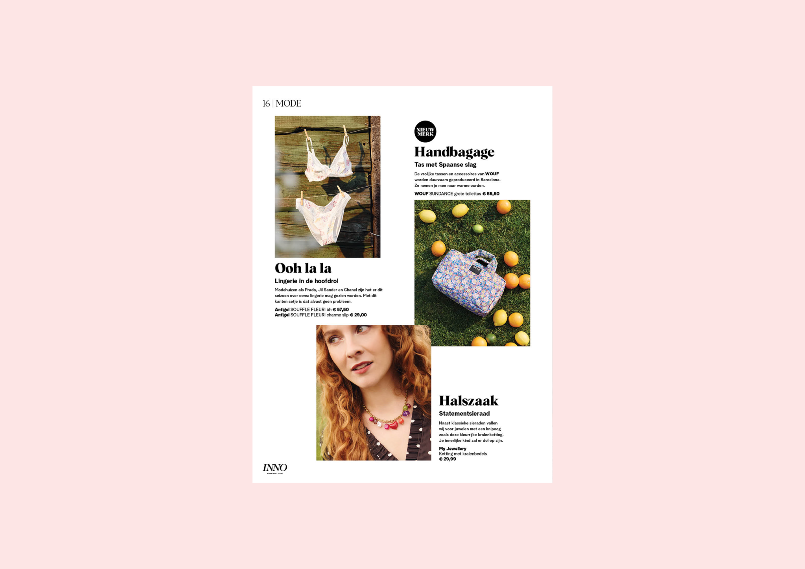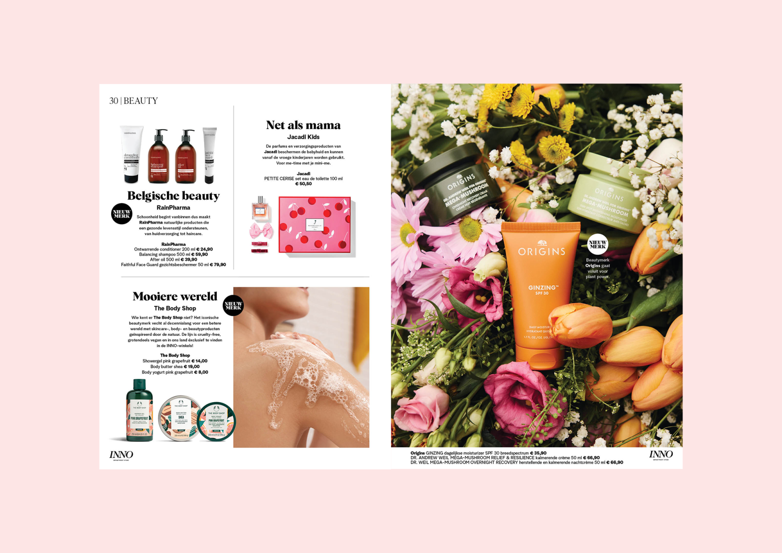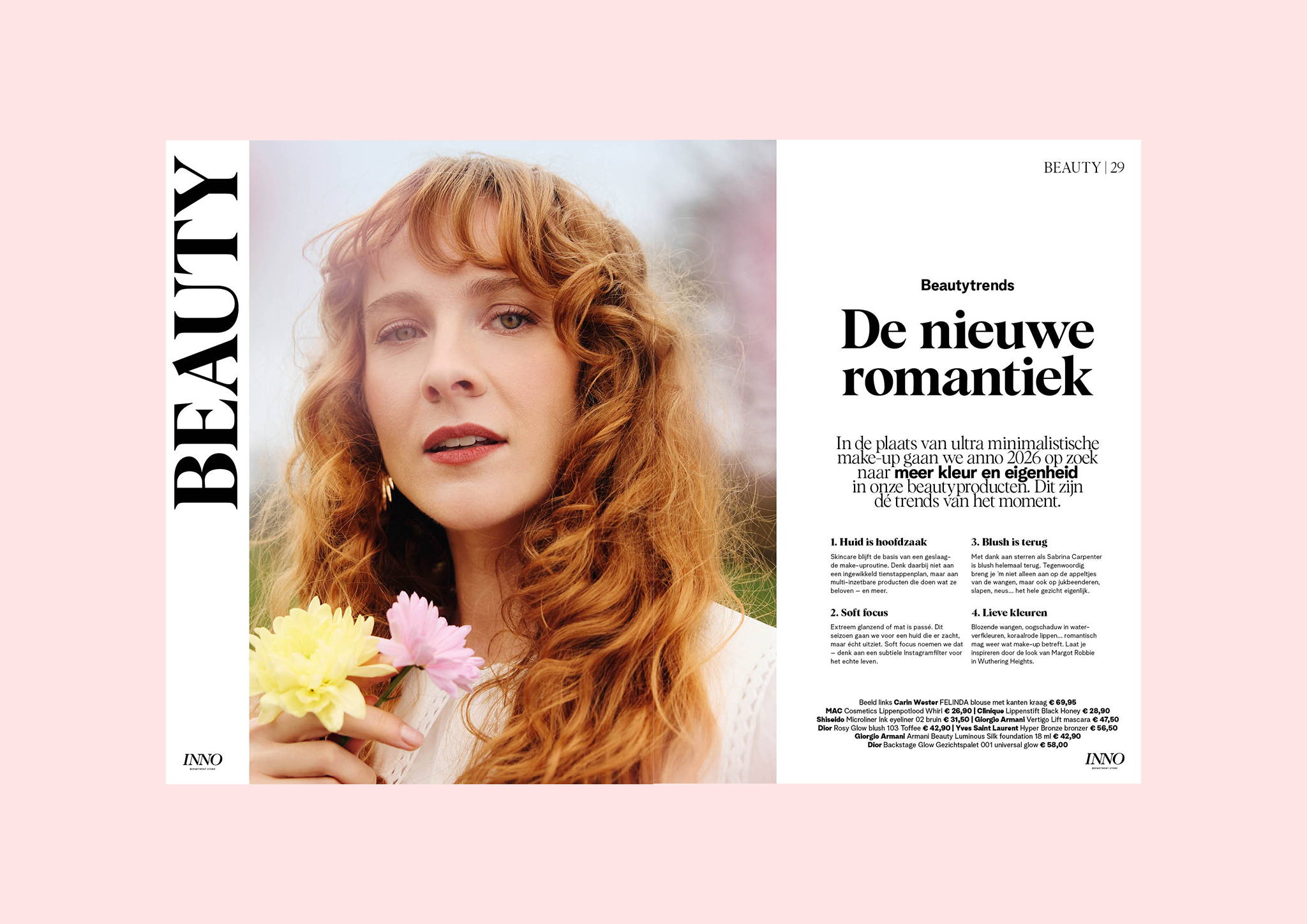 In samenwerking met Roularta Brand Studio werkte ik als art director aan het Spring Issue voor INNO, een 44-pagina’s tellend magazine rond mode, beauty en home.